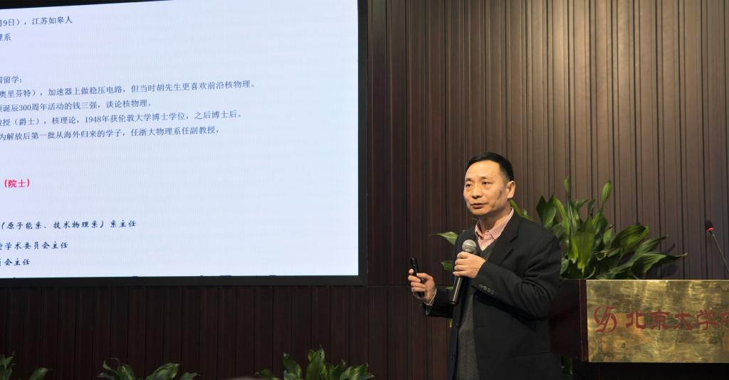 在北京大学技术物理系主任冒亚军教授主持下,首先由原技术物理系主任,胡济民先生的学生许甫荣教授介绍了胡济民先生的生平以及胡先生在学术上和教育上为祖国核科技事业所做出的卓越贡献。