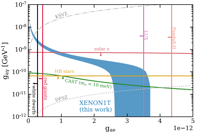 XENON1T实验组曾在2020年6月发表的预印本论文(arXiv: 2006.09721)中指出,在1~7 keV探测到的电子反冲事例多于预期,且集中于2~3 keV;此文章后来于10月正式发表在《物理评论D》(PRD 102, 072004 (2020))上。北京大学物理学院、核物理与核技术国家重点实验室刘佳研究员及合作者发现,XENON1T及以往所有液体惰性气体类直接探测实验在太阳轴子模型行实验分析中所使用的理论框架忽视了一个重要的探测过程,即逆普里马科夫过程。如果轴子和光子具有相互作用,它可以通过氙原子核的电场转化成为光子。由于在XENON1T实验中,keV光子和具有keV动能的电子在液氙的能损非常迅速且极为相似,二者区别无法通过实验分辨,因此轴子的逆普里马科夫效应对实验分析有重大影响。刘佳等人的研究首次指出逆普里马科夫效应在太阳轴子探测中的重要性,以及在加入该效应之后,XENON1T的实验数据与天文星体冷却限制之间的矛盾显著缓解;上述研究结果在XENON1T的PRD论文中也得到认同。