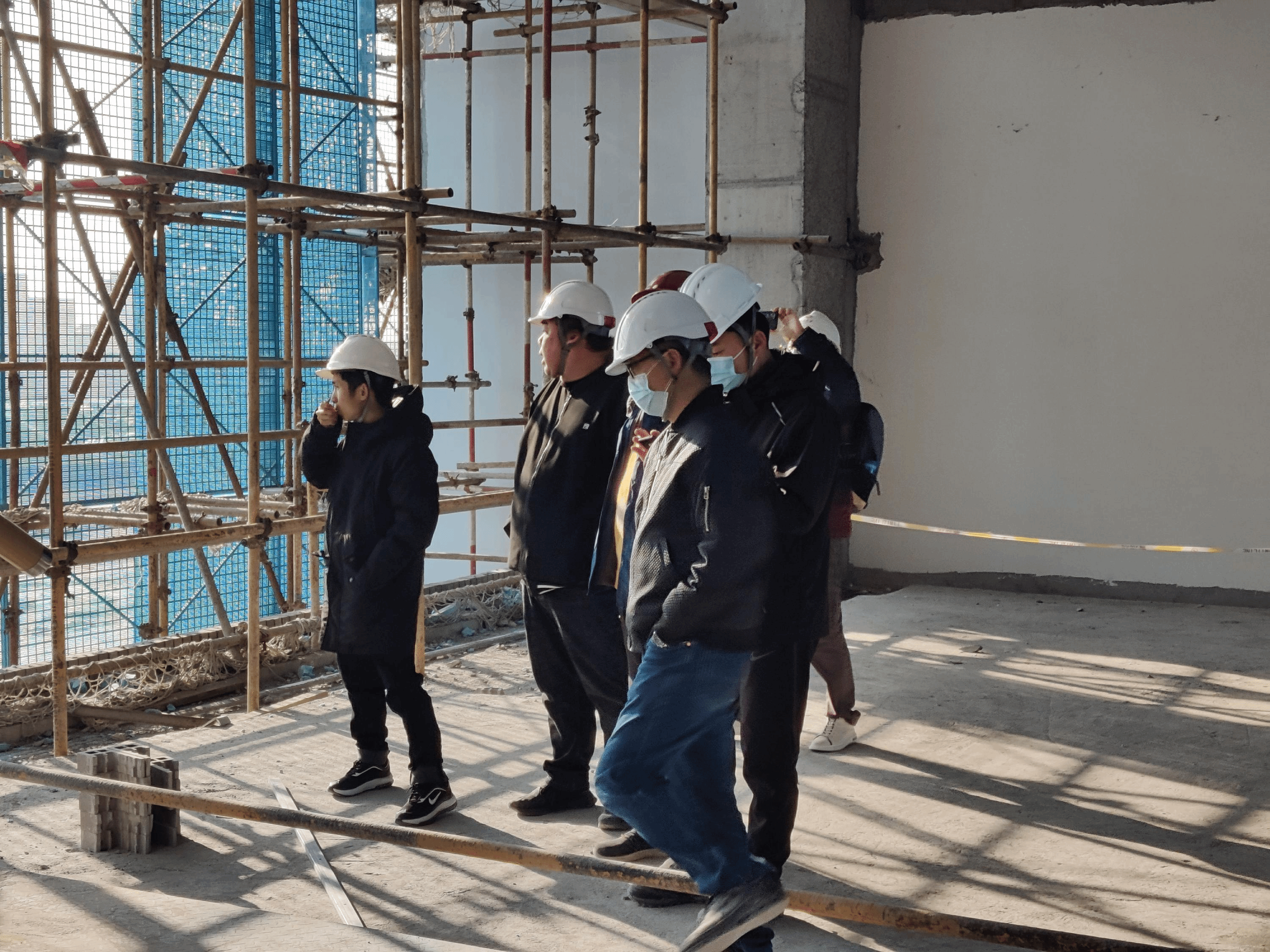 随后,颜学庆教授、马文君副教授一行人在现场参观了项目实验室区域与办公区域,并重点参观了实验室超净间区域,肯定了超净间分包的工作,并期待后续工程完美收官。而办公区域还未到室内装修阶段,因此我们此行无法一览全貌,但依然能从已经建成的结构中感受到其中的静谧与秩序。