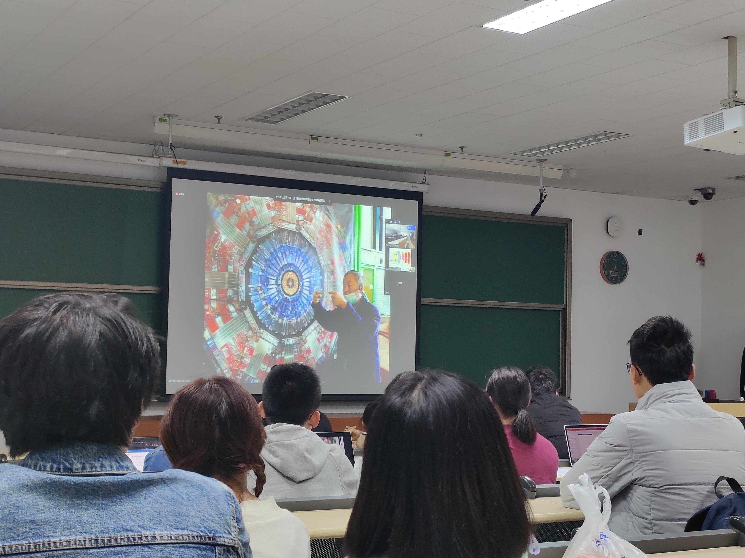 现场来了很多对高能物理实验感兴趣的同学,蔻享线上平台在线观看人次为1804人。大家认真听了钱思进老师和李聪乔学长的讲解后,对CMS探测器有了更深入的了解。钱老师幽默风趣,浅显易懂地向大家介绍着CMS探测器,现场气氛轻松活跃。