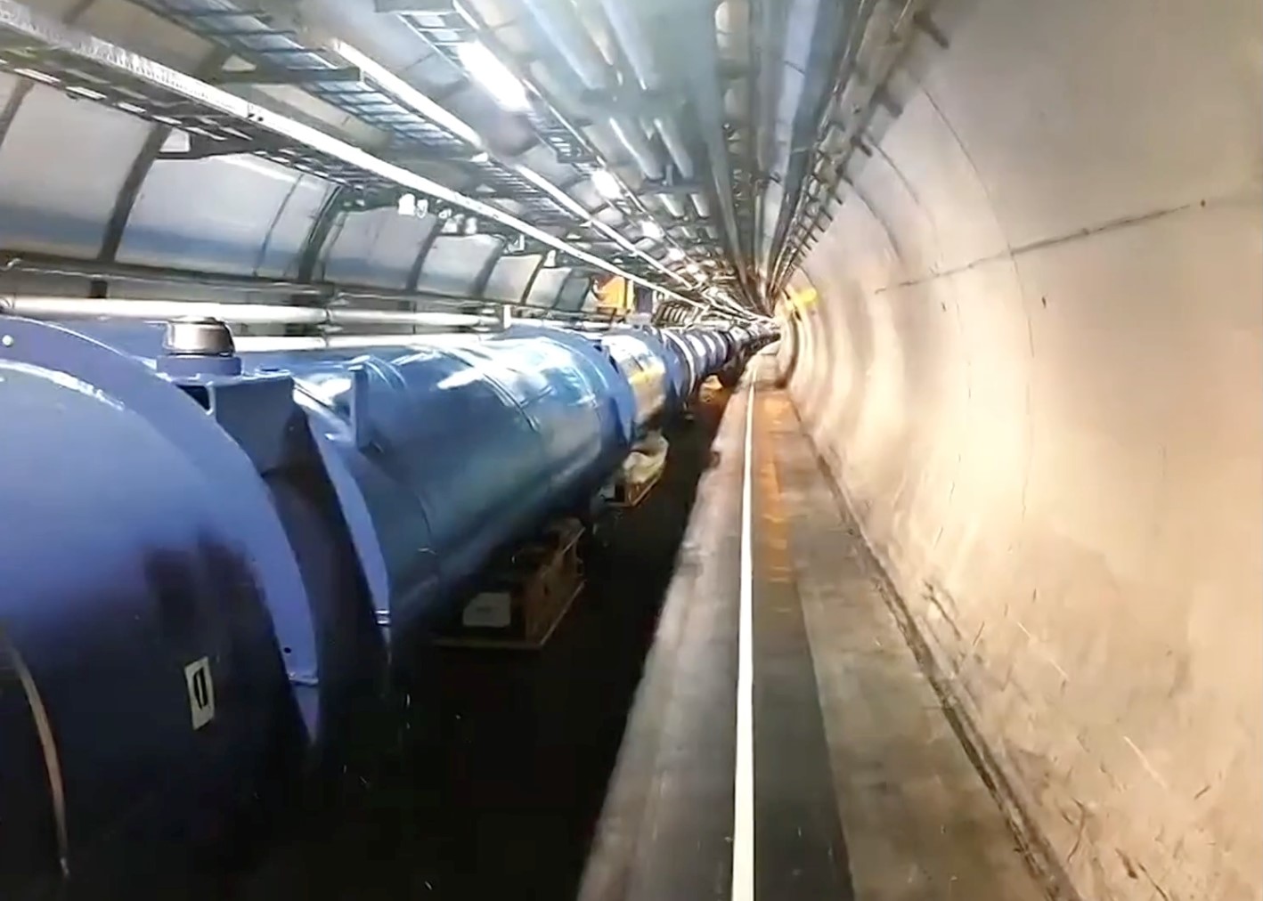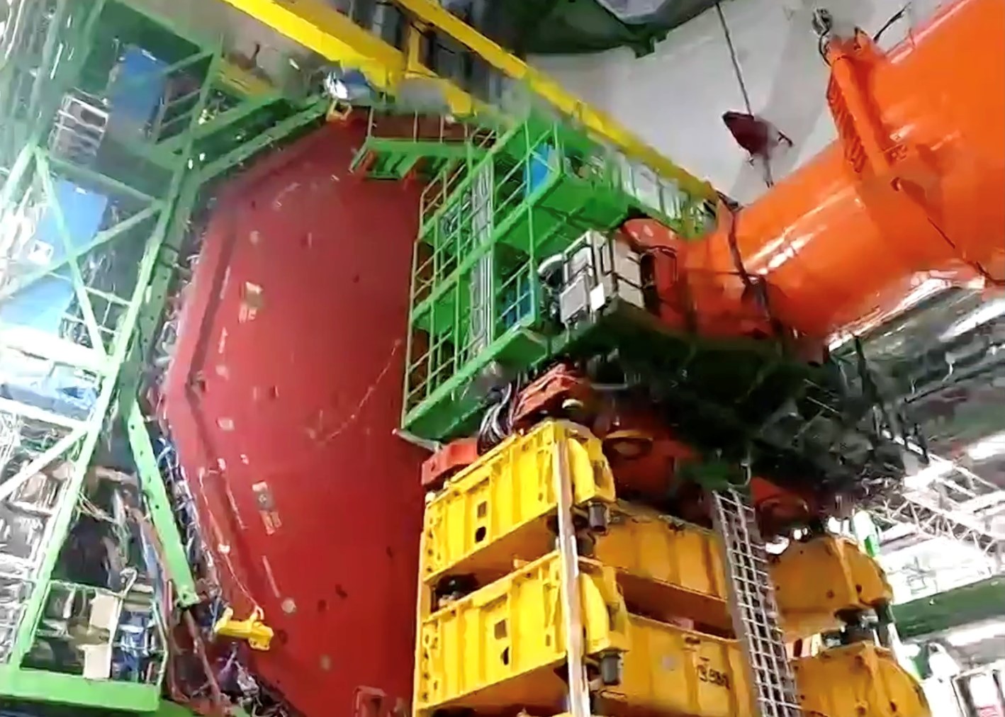 LHC(大型强子对撞机)是目前世界上能量最大的对撞机,对撞能量可以高达13TeV,可以将质子加速到0.9999倍的光速。两束质子发生对撞会产生大量的粒子,此时需要实验仪器将对撞产生的末态产物记录下来,便于物理学家对记录的实验数据进行研究。大型强子对撞机埋藏在地下100米的地方,质子束流被分为两束在环中顺逆时针加速运动,在环中有四处对撞点,引导这两束质子在对撞点发生碰撞,CMS(Compact Muon Solenoid)探测器位于其中一个对撞点。