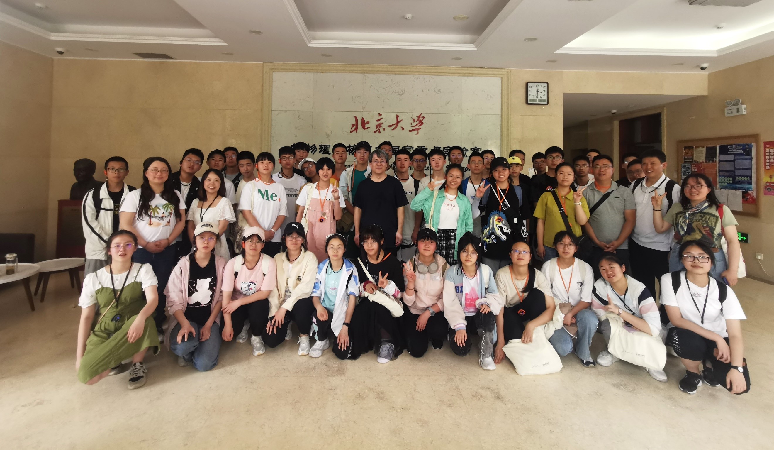 最后薛建明所长给学生们出了一个很贴近生活的物理竞赛题目,留给学生们思考,也欢迎和他交流题目的解答方案。活动结束后,雅安中学师生一行在加速器楼一楼大厅留下了合影纪念。