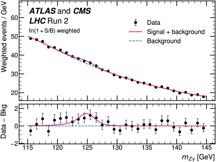 图2: ATLAS+CMS联合分析中的Z玻色子和光子不变质量谱