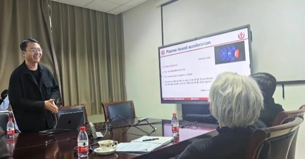 Gérard Mourou教授在报告过程中就诸多问题与方案细节与大家进行探讨,对实验室团队积极探索激光加速的各类新型应用给予了高度评价。在介绍放射生物学实验方面进展时, Mourou教授为加深自己对实验内容的理解,积极请教在座的老师同学们相关生物学知识与研究背景,这给大家留下了及其深刻的印象。Mourou教授指出超短超快的探测手段或损伤手段在生命科学与化学领域早有用之,因为这些体系内发生的过程总是非静态的、在进行演变的,超快的手段有利于精确地探测或影响某一个过程,而长时间的干预会让体系演变的不确定性和误差变大。这个概念对大家对探索超快激光或者激光加速的潜在应用是很重要的。