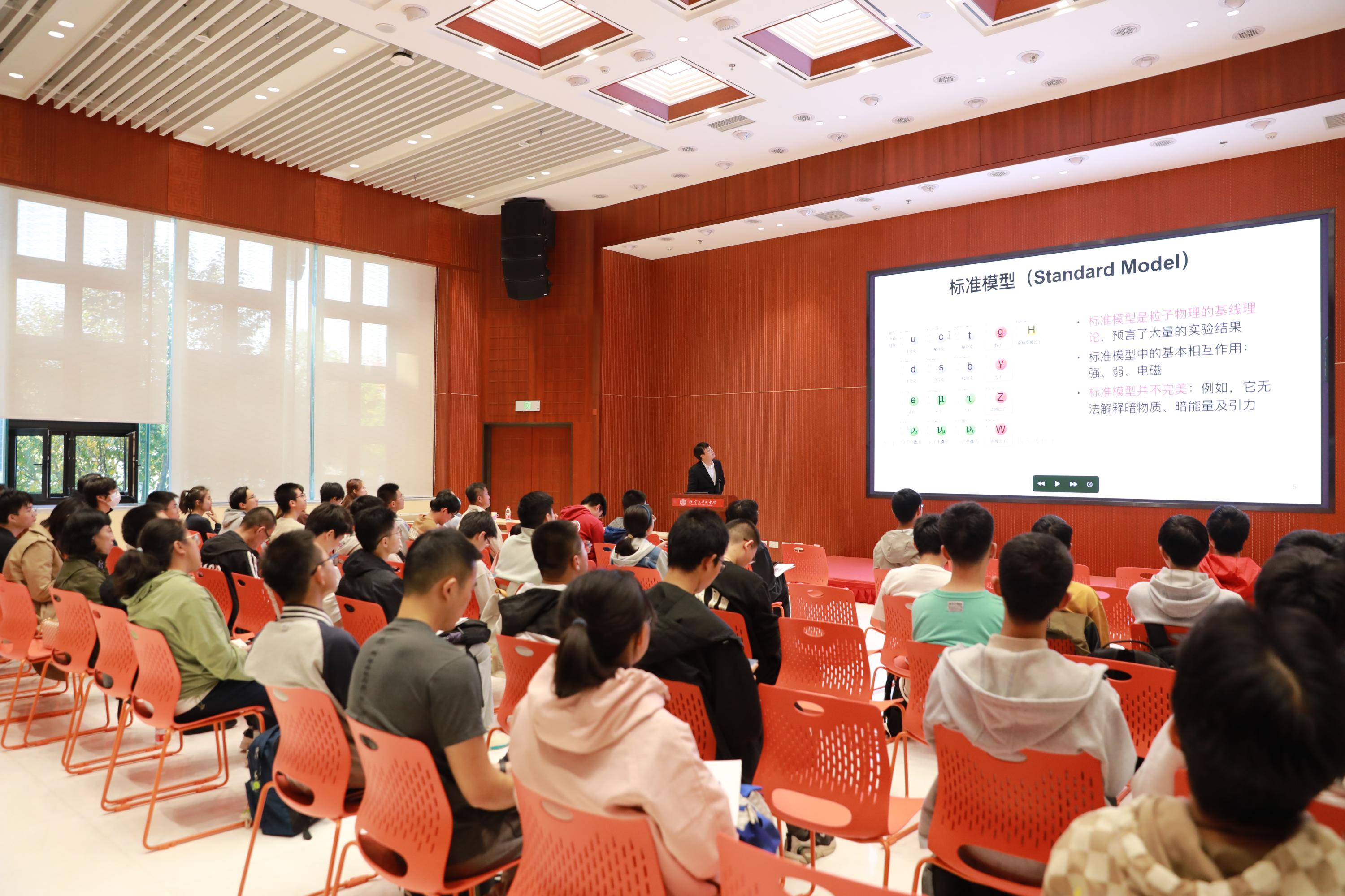 在随后的现场提问环节中,周辰就在LHC上如何寻找暗物质、暗能量,基本粒子的质量和宏观物体的质量之间的关系,粒子物理研究中的信号与本底,是否可以用无限复杂的模型来拟合数据,希格斯玻色子是否可以再分等同学们关心的问题给出了深入浅出的解答。周辰认为标准模型理论是自然、简洁的,我们通过实验与理论相比较来理解、验证标准模型。高能物理实验需要一定的理论功底,需要和理论物理学家充分交流,才能得到更好的实验结果和课题,他鼓励同学们积极参与到高能物理实验的分析中来。