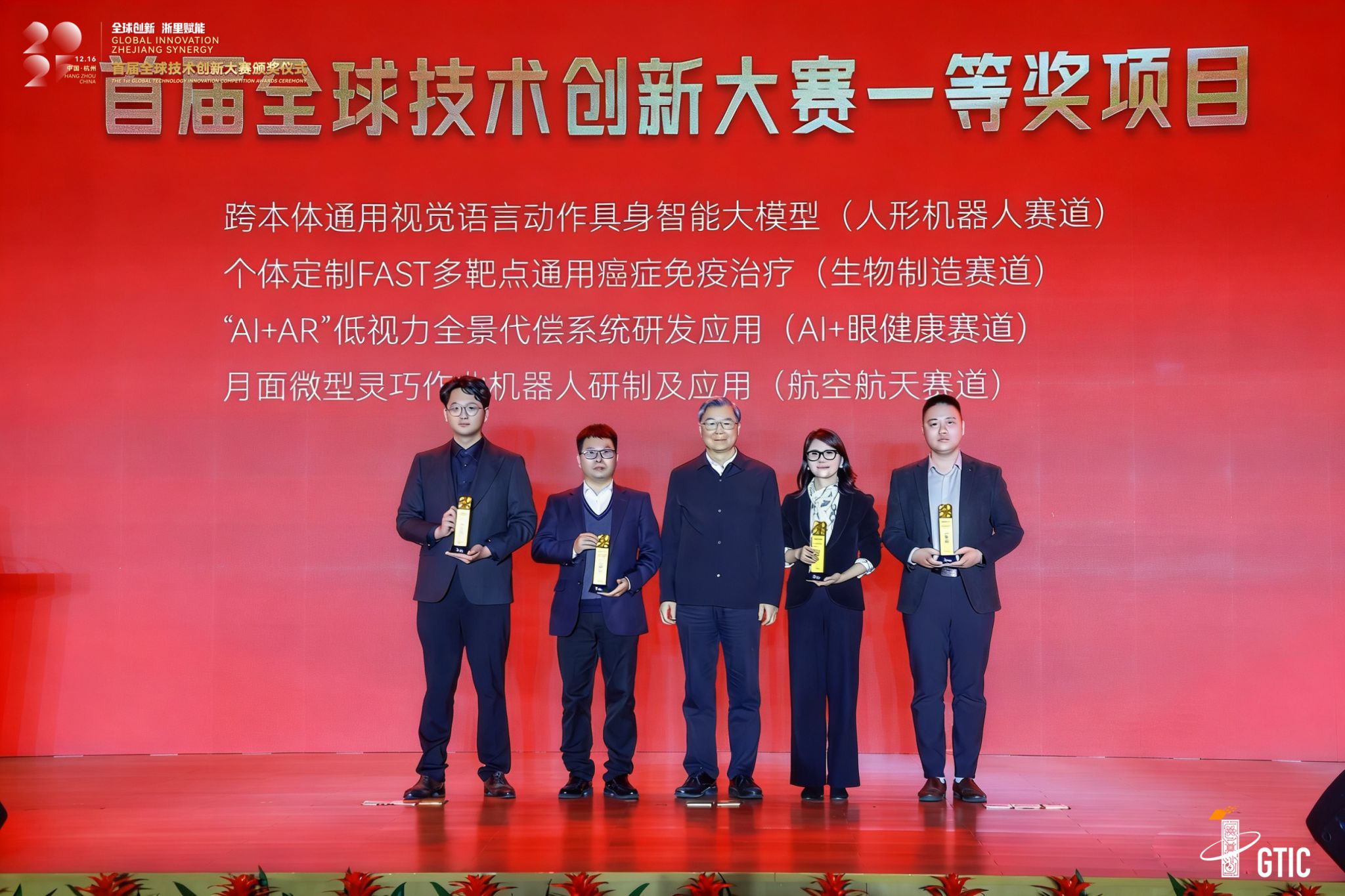 近日,首届全球技术创新大赛在杭州圆满收官。该赛事由浙江大学、西湖大学、浙江省经济和信息化厅主办,聚焦人形机器人、生物制造、AI+眼健康、航空航天四个前沿赛道,面向全球高校和科研机构等,鼓励具有产业转化前景的创新性、技术突破性项目和人才团队参与,吸引来自全球10多个国家和地区的640余个优质创新项目参赛。历经半年角逐(项目招募、初筛海选、决赛路演三阶段),由施一公院士领衔的 188 人专家指导委员会(含 18 名院士)严格评审,最终评选出 4 项一等奖、8 项二等奖、17 项三等奖。其中,北京大学物理学院杨根团队的 “个体定制 FAST 多靶点通用癌症免疫治疗” 项目,凭借全球领先的快速疫苗制备技术,斩获生物制造赛道一等奖。