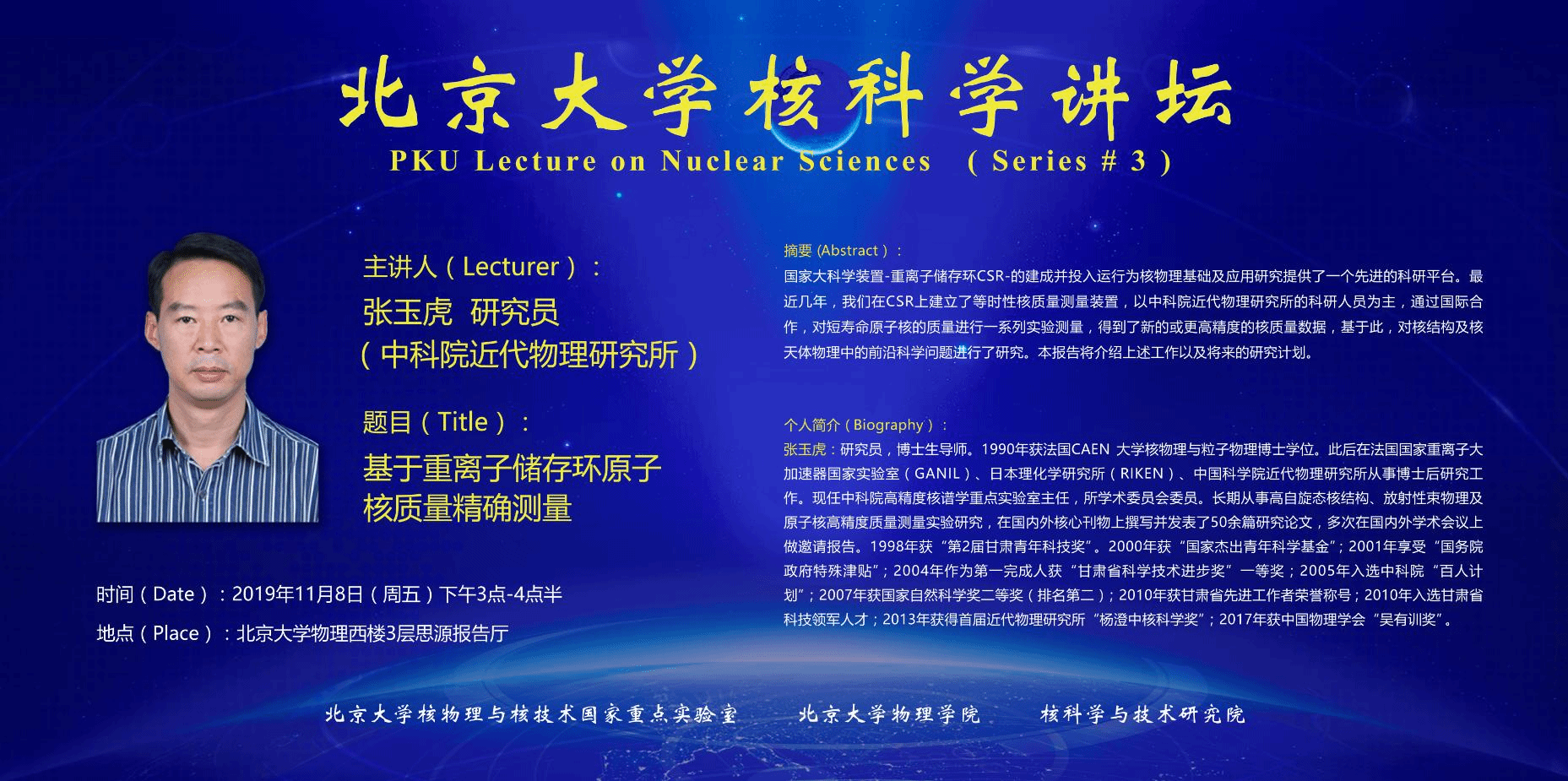 主讲人(Lecturer):张玉虎 研究员 (中科院近代物理研究所)