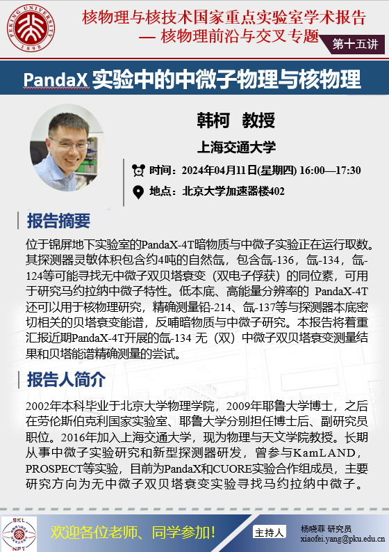 核物理与核技术国家重点实验室学术报告— 核物理前沿与交叉专题(第十五讲)