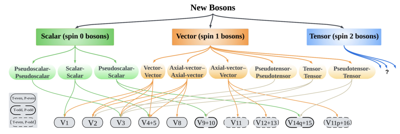 该综述聚焦超出标准模型的新物理探索,深入分析了可能由Z'粒子或轴子等新粒子介导的自旋相关奇异相互作用。由于超出四种基本相互作用之外,故又称为第五种力。这些相互作用不仅是探测新物理的重要窗口,还与暗物质探测密切相关。研究团队创新性地从相互作用耦合类型出发,建立了系统化的理论框架,为不同实验结果的比较提供了统一标准。